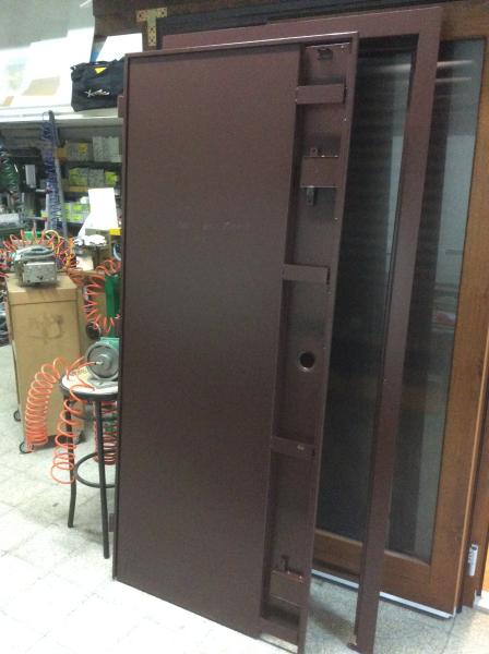 Le nostre porte blindate artigianali sono realizzate con anta e telaio in lamiera pressopiegata a freddo,telaio sagomato antistrappo con bocca di lupo lato cerniere,doppia battuta lato chiusura,serratura con cilindro europeo a 5 chiavi ad alta sicurezza con 10 punti di chiusura su anta unica e 12 punti sulla doppia anta,ancoraggio al muro con perni da 20 cm circa e 2 a pavimento,cerniere con sfere in acciaio interne autolubrificanti,spioncino 180°,paletto notte e paraspiffero