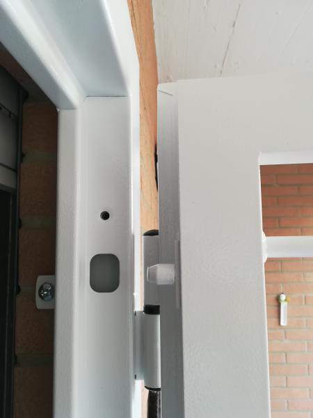 Installiamo grate di sicurezza con tutti gli accorgimenti possibili e in foto il parastrappi che dall'anta si inserisce nel telaio e impedisce la forzatura sulla cerniera esterna con arnesi da scasso.